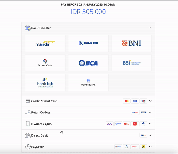 - Pilih metode direct debit pada tautan pembayaran